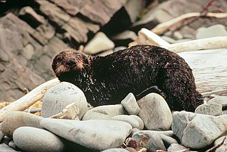 Dead oiled sea otter